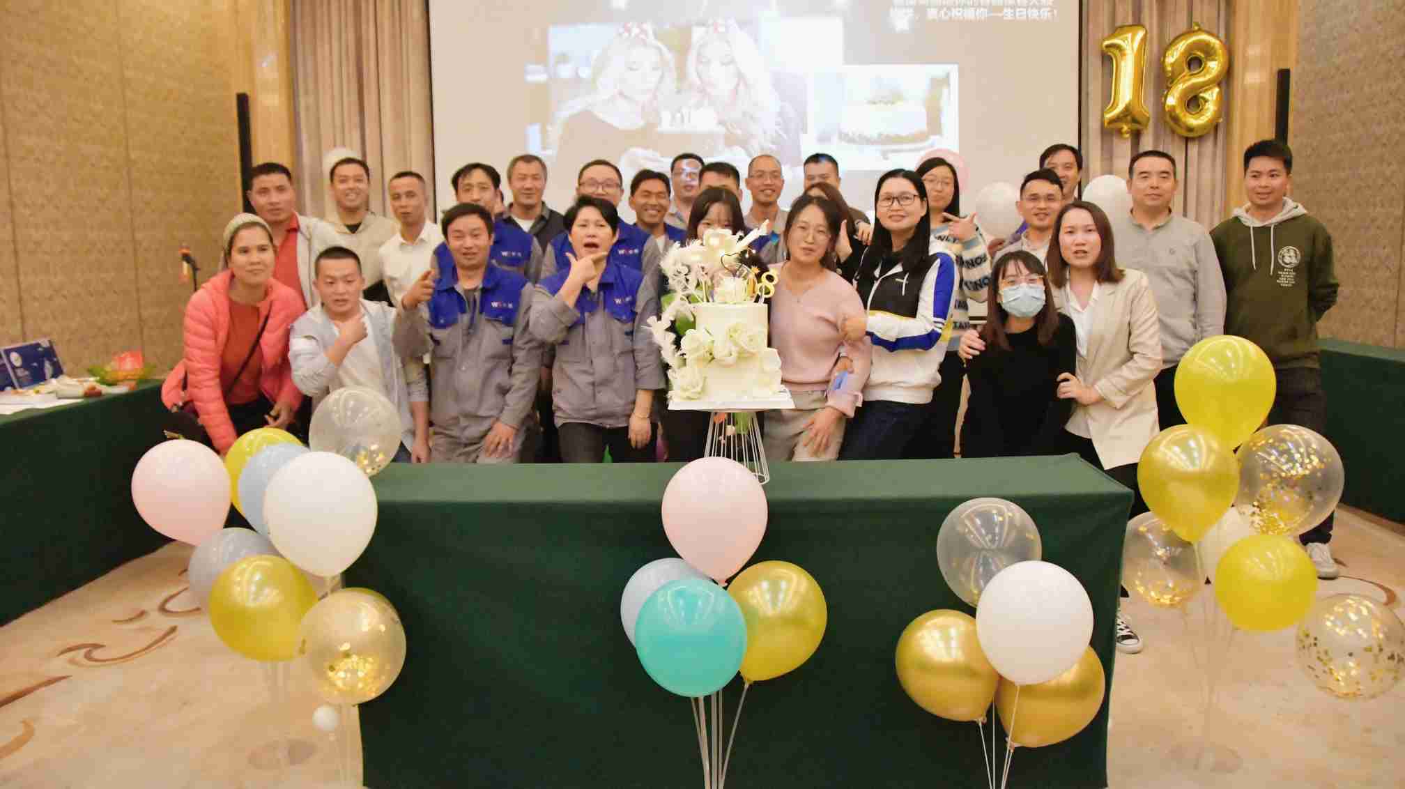 為了增強公司團隊凝聚力,加強員工歸屬感,進一步推動公司企業(yè)文化建設,讓每位員工切實感受到公司這個大家庭的溫暖。也為了表達感謝,感謝大家一路走來的努力與堅持,感謝大家與華美一直同在,同時也為了慶祝正中的18歲生日。2021年12月13日,華美科技舉辦了11-12月員工生日會與集團18周年慶同慶。