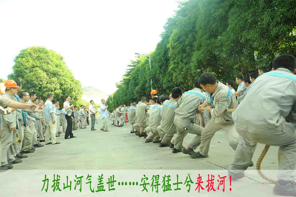 本次拔河比賽,華美板材各班組及辦公室人員組成了14只強(qiáng)隊(duì),每隊(duì)10名隊(duì)員。在首輪淘汰賽中,金盾、飛虎、禿鷲、集結(jié)號分別力壓陽光、夢幻、亮劍、利戰(zhàn)隊(duì),獲得首輪晉級資格。