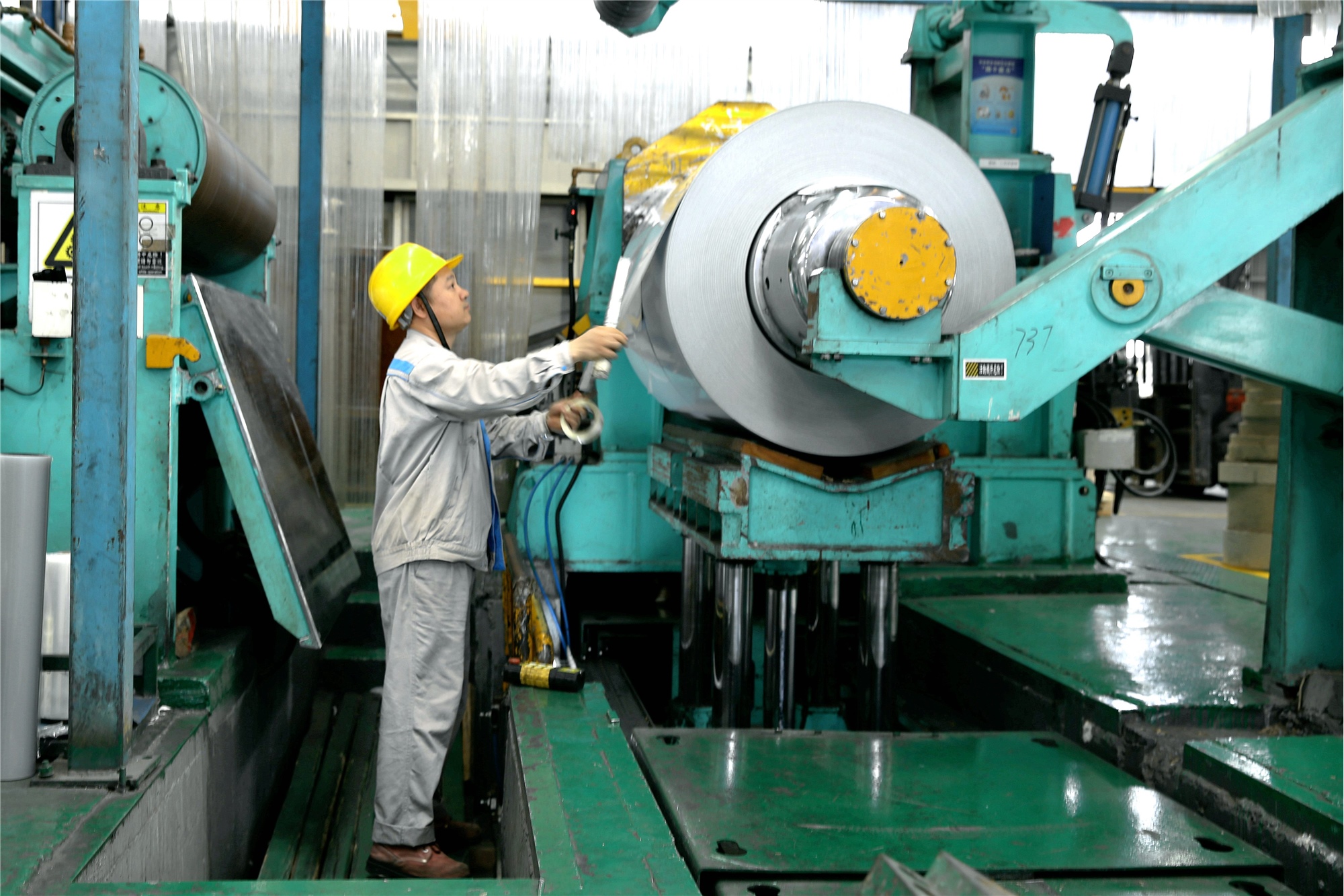 ▲ 一卷彩涂板正在上剪切機