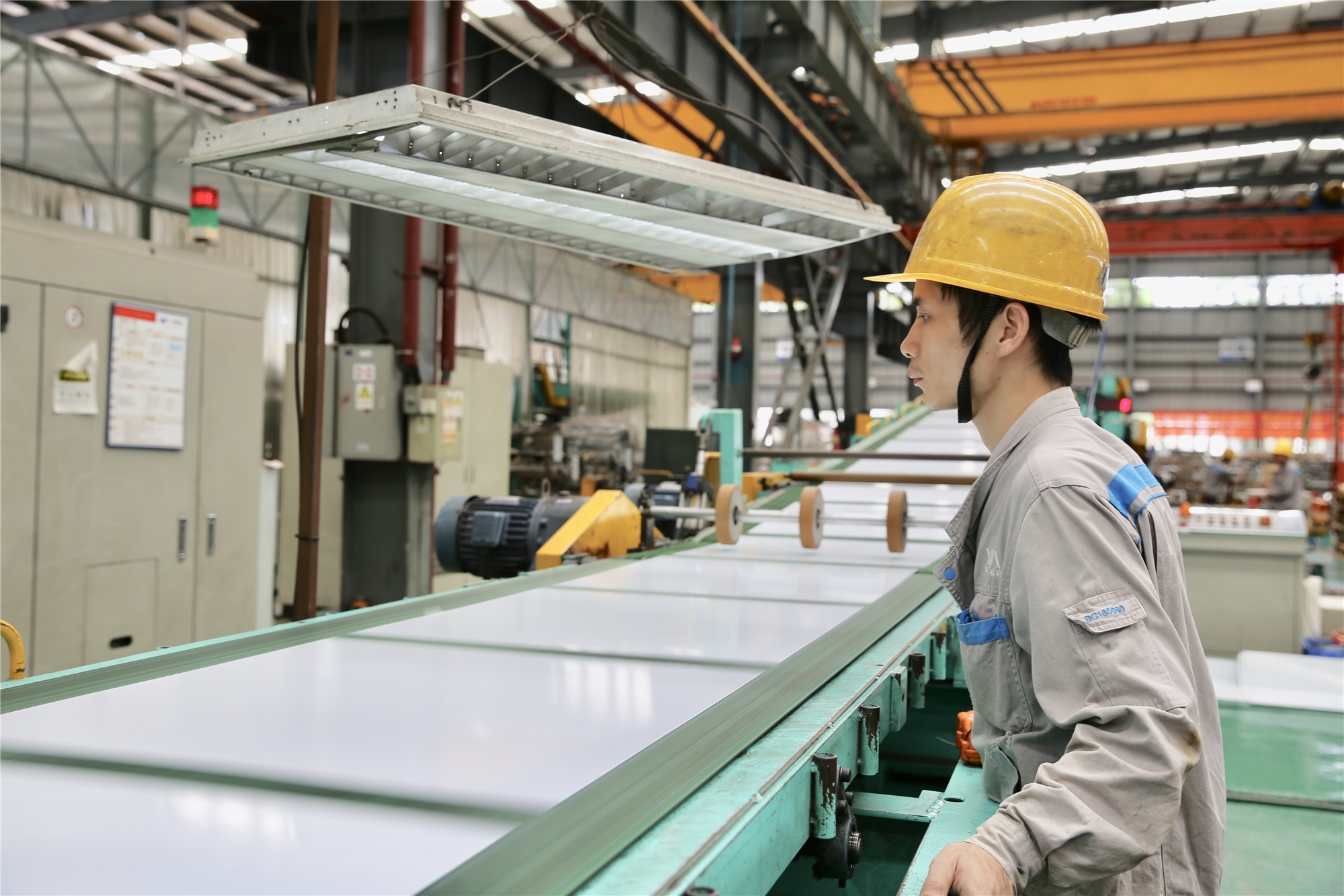 在板材生產(chǎn)部,剪切車間的人數(shù)是最多的,有90多名員工,因為作為整條工藝的最后一環(huán),剪切產(chǎn)量直接關(guān)系到產(chǎn)品出貨量,在這里,速度就是效益。