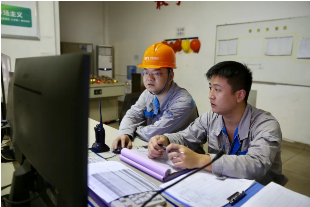 ▲ 黃申(左)在監(jiān)控室查看設(shè)備狀態(tài)