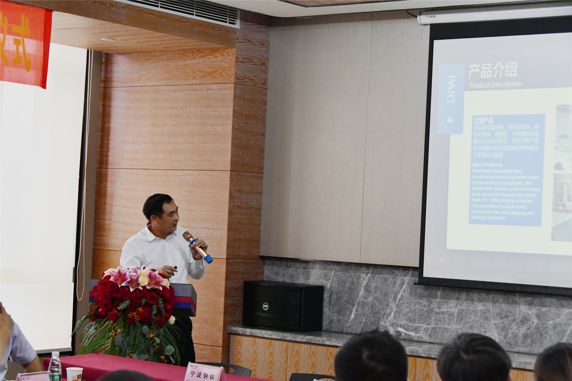 之后,寶鋼南方公司總經(jīng)理徐雅琦致辭,徐總對寧波鋼鐵、寶鋼南方、深圳華美三方合作成立聯(lián)合創(chuàng)新中心的戰(zhàn)略舉措表示祝賀。徐總表示,寶鋼南方公司作為寶鋼股份在華南的銷售平臺及寧波鋼鐵、深圳華美雙方的橋梁紐帶,將積極發(fā)揮作用,提升、融合和助力三方的共贏發(fā)展,并祝聯(lián)合創(chuàng)新中心早日取得成果。最后,深圳華美板材副總經(jīng)理劉世平致辭,劉總用改革開放時的“拓荒牛”,到納入正中旗下的“奮斗?!保俚轿磥砼c資本聯(lián)動的“黃金?!钡? “三頭牛”故事描繪了華美的過去、現(xiàn)在和未來。用“鐵三角“的關系描繪了三方在合作領域的關系,希望借助聯(lián)合創(chuàng)新中心的成立升級三方的合作層級、深度和廣度。劉總表示,深圳華美的規(guī)模、競爭力和品牌知名度將與日俱增,并且已經(jīng)確定了走大鋼廠路線,即走與大鋼廠深度合作、聯(lián)合創(chuàng)新的路線來實現(xiàn)華美的高質(zhì)量增長。劉總最后也用“三個金蛋”來比喻對聯(lián)合創(chuàng)新中心的希冀與信心。